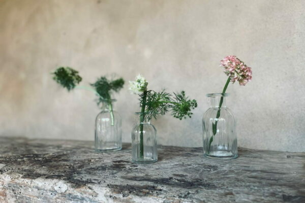 Set of 2 vases in recycled glass. Transparent. Pack 24 u. Ø 7,5 cm / H 14,5 cm. Ø 5,5 cm / H 10,5 cm.